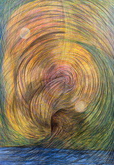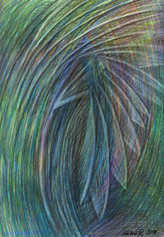 2016 kuulin päässäni äänen sanovan, että minulle tapahtuu huomenna jotain suurta. Odotin koko päivän mitä tapahtuu, ja olin jo luovuttaa ja mennä nukkumaan, kun ääni sanoi "ota kynä ja paperia". Etsin kynän ja paperin ajattelen, että tuleekohan automaattikirjoitusta. Käteni alkoi liikkumaan vimmatusti paperilla, kuulakärkikynästä loppui muste, kuten myös seuraavasta kynästä. Tajusin, että minun täytyy hakea kunnon kynä ja paperia. Löysin luonnoslehtiöni ja lasten vanhan puukynäpussin. Sanoin mielessäni kädelleni, että valitse oikeanlainen kynä. Käteni poimi lyijykynän. Piirsin kolme isoa piirustusta, jossa jokaisessa oli erilainen silmä.